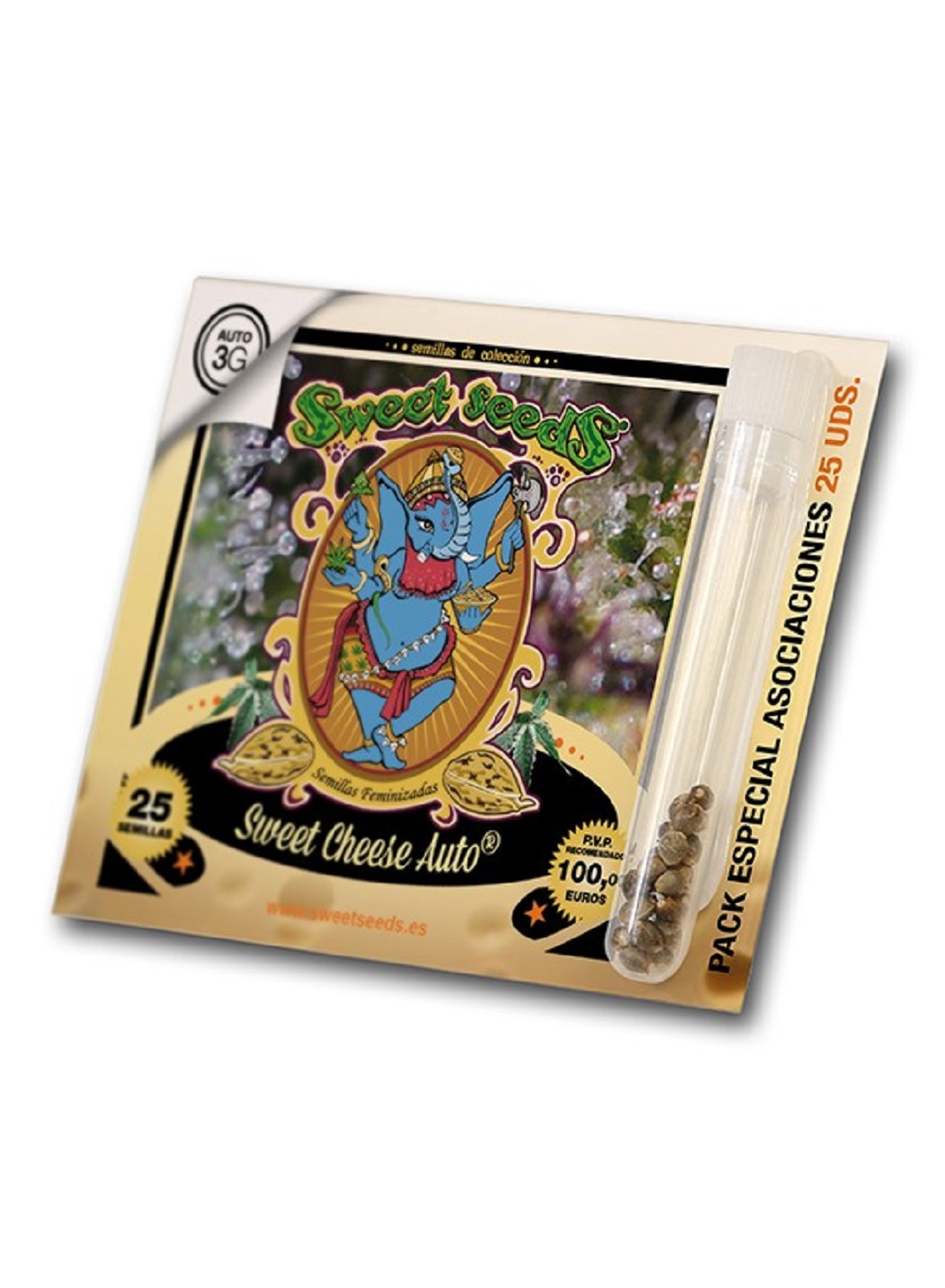 Sweet Cheese Auto to wersja autoflowering znanego Sweet Cheese od Sweet Seeds. Odmiana zachowała charakterystyczny zapach i działanie oryginału przy dodanych cechach samokwitnienia. Feminizowane nasiona dostępne w sklepie w paczkach po 3, 5, 25 i 100 ziarenek.